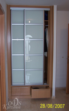 Wyposażenie szaf: systemy drążków, kosze metalowe bądź wiklinowe, szuflady, pentagrafy, wieszaki na spodnie, paski, krawaty, półki regulowane, półki metalowe na buty, itp.